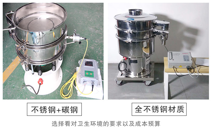 【篩機材質】—— 玉米淀粉作用食品行業物料,所以推薦您使用不銹鋼材質,而常用的不銹鋼超聲波振動篩分為兩種結構,一種是整機均采用不銹鋼制成,另一種是與物料接觸不分為不銹鋼材質,底座為碳鋼材質,至于如何選擇就看您對衛生環境的要求以及成本預算了。