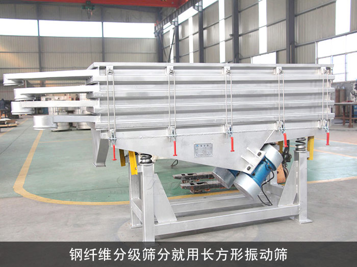 鋼纖維是指以切斷細鋼絲法、冷軋帶鋼剪切、鋼錠銑削或鋼水快速冷凝法制成長徑比(纖維長度與其直徑的比值,當纖維截面為非圓形時,采用換算等效截面圓面積的直徑)為40~80的纖維。今天小編就來大家介紹一下這款適合鋼纖維篩分的長方形振動篩有哪些優勢?