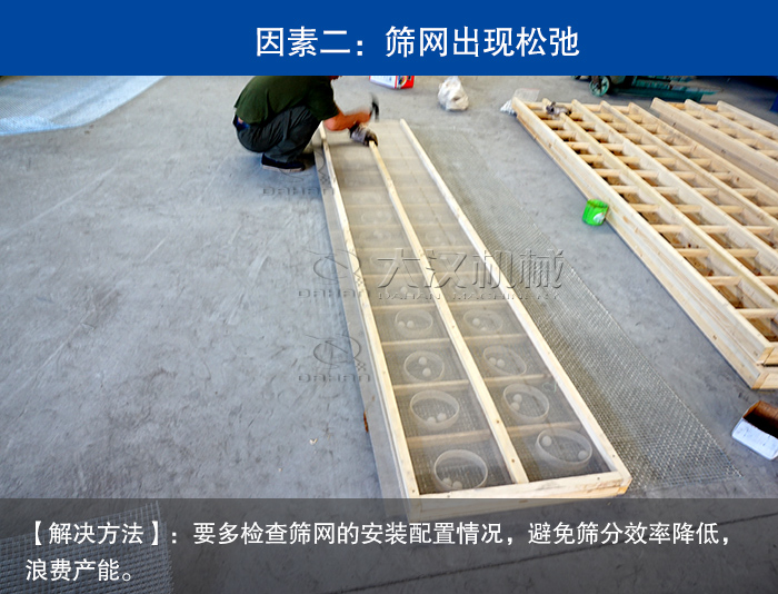 【解決方法】:要多檢查篩網的安裝配置情況,避免篩分效率降低,浪費產能。
