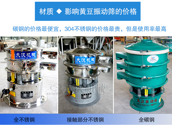 影響黃豆振動篩價格的因素有多種(如:材質、型號、層數、設計、廠家等),那么今天就以材質為例,為您說說黃豆振動篩的價格情況!