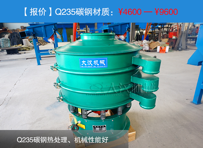 Q235碳鋼熱處理、機械性能好!——Q235碳鋼材質是振動篩材質的一種,它的價格便宜、熱處理和機械性能好,雖然它適用的行業有很多,但是它的材質具有一定的腐蝕性,衛生條件也是相對差一些,所以對于篩分食品用黃豆的用戶來說還是要慎重選擇。