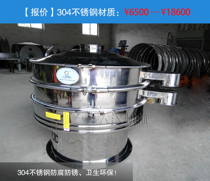 304不銹鋼防腐防銹、衛生環保!——304不銹鋼材質的振動篩是采用304不銹鋼材質(兩種結構規格:一、整機均采用不銹鋼制成;二、物料接觸不分為不銹鋼材質,底座為碳鋼材質),它是食品、醫藥專用材質,雖然我們要篩分的是化學物料錫粉,但是對于衛生環境要求較高的企業這也是不錯的選擇。