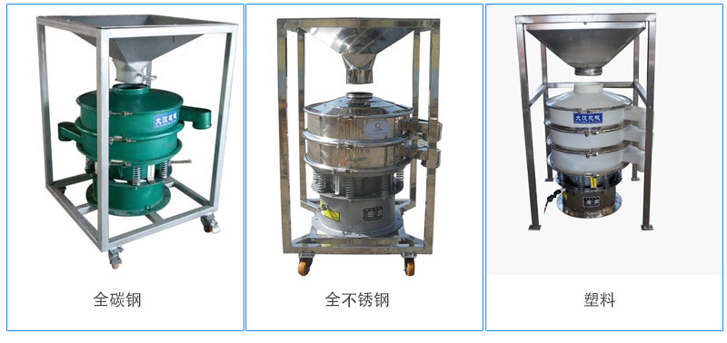 塑料材質的料倉旋振篩整體為PVC制成,具有較強的耐腐蝕性,無金屬無磁性,適合一些特殊的、會與金屬產(chǎn)生反應的物料篩分使用,例如氧化鋯、熒光劑以及其他一些化學助劑。