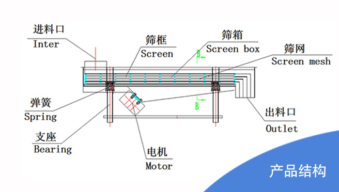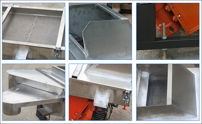 食品直線振動篩主要由篩箱、篩框、篩網(wǎng)、振動電機(jī)、電機(jī)臺座、減振彈簧、支架等組成。