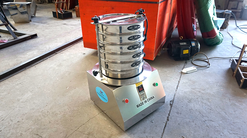 2、把標準試驗篩框按孔徑從小到大,從下到上依次疊放到篩框座上,由凹槽或定位螺絲對標準篩框進行定位。